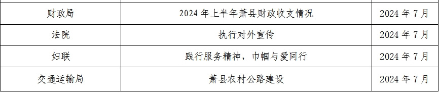 內(nèi)容簡(jiǎn)介:2024年上半年蕭縣財(cái)政收支情況;執(zhí)行對(duì)外宣傳;踐行服務(wù)精神,巾幗與愛同行;蕭縣農(nóng)村公路建設(shè)。