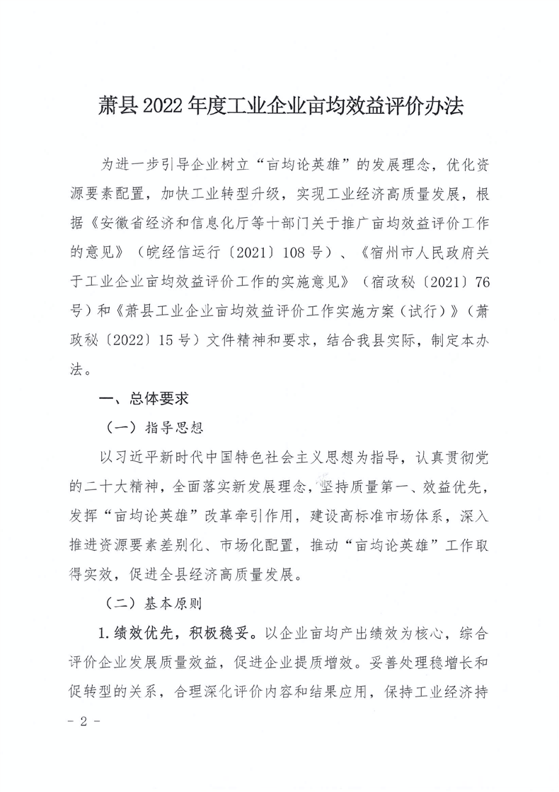 【文字解讀】蕭縣2022年度工業(yè)企業(yè)畝均效益評價辦法