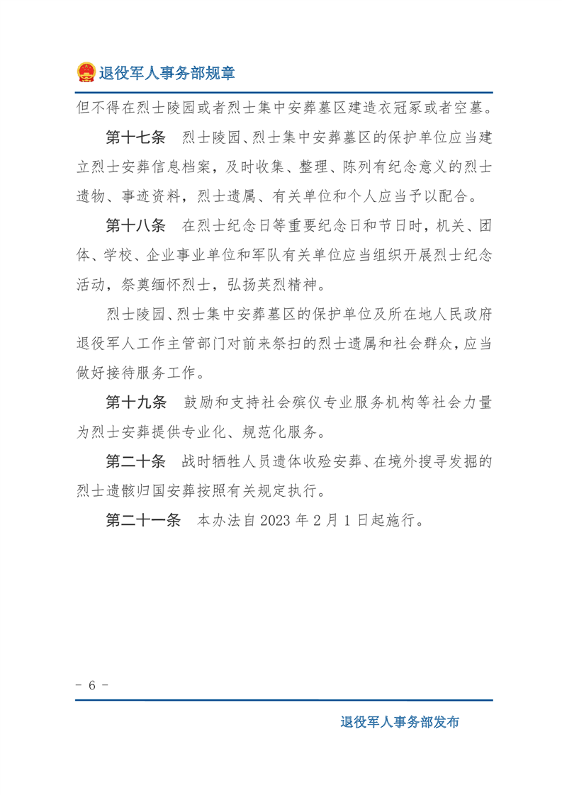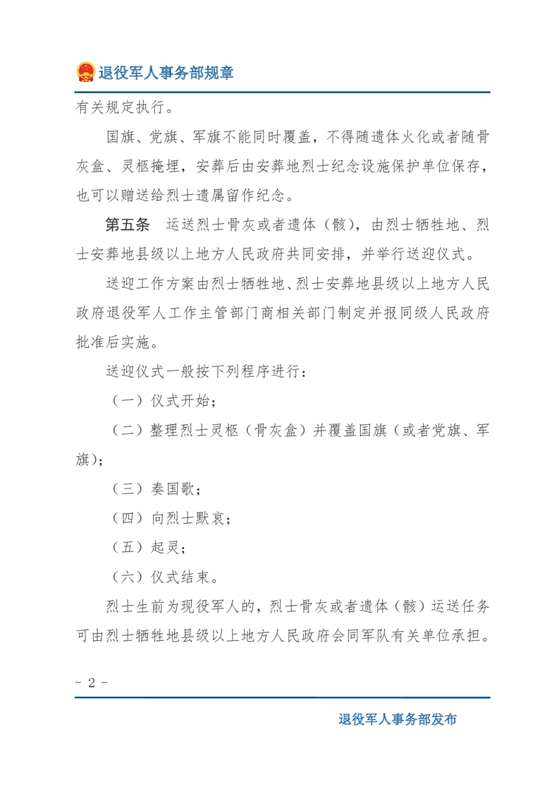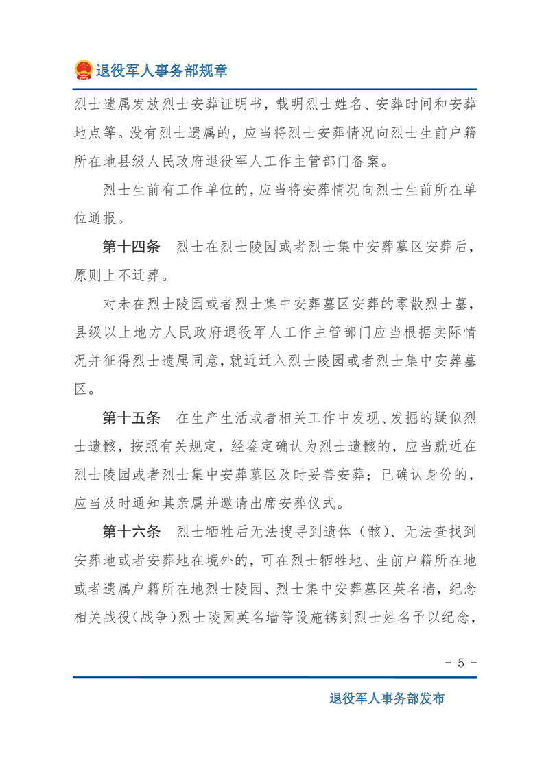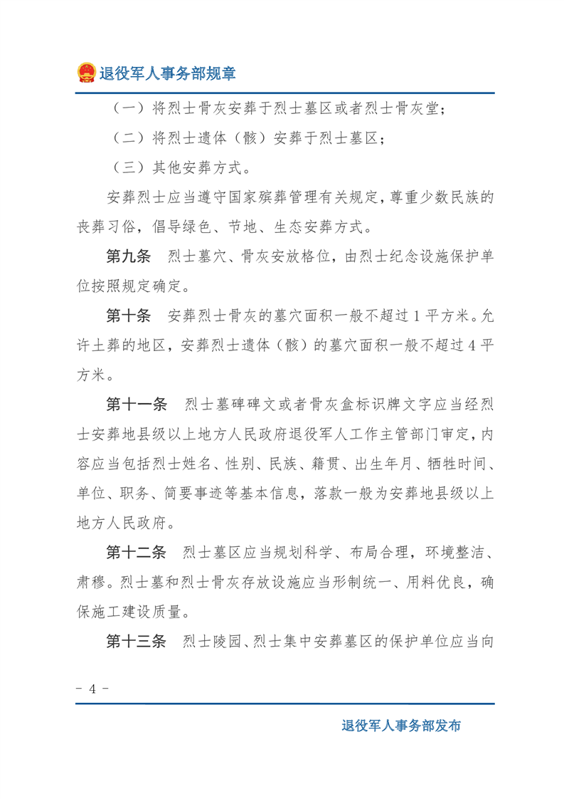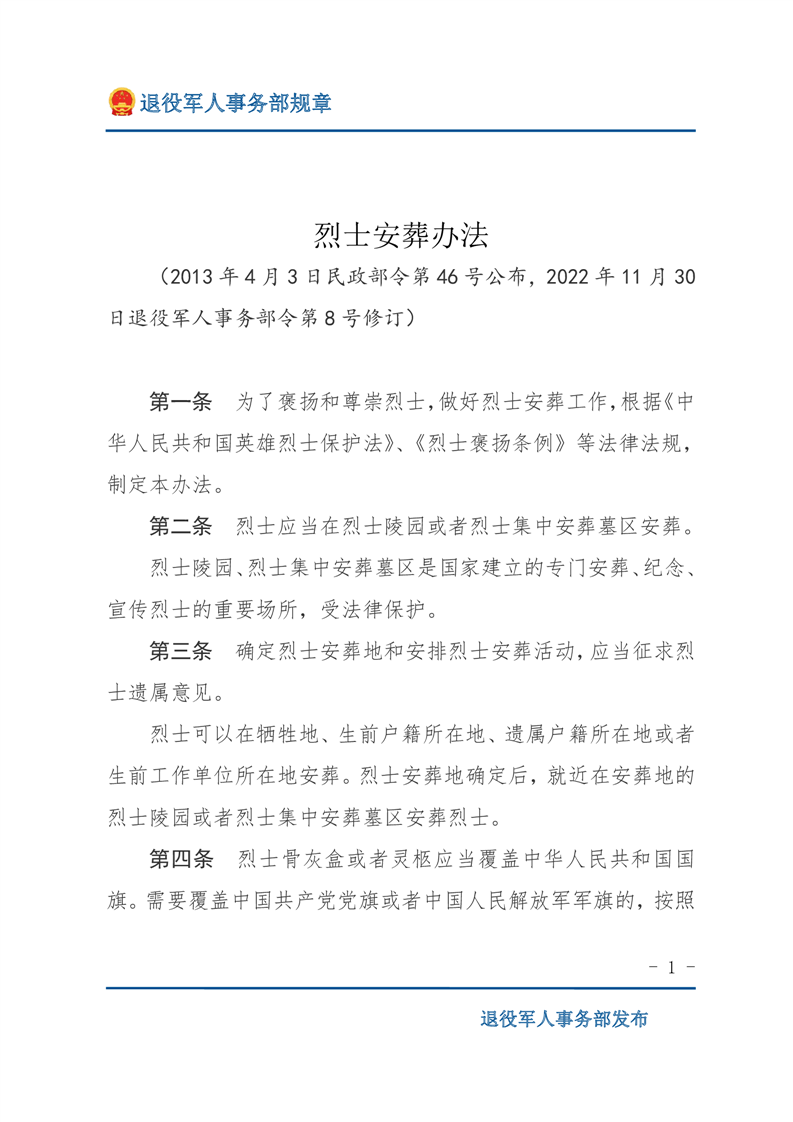 《烈士安葬辦法》(2013年4月3日民政部令第46號公布,2022年11月30日退役軍人事務部令第8號修訂)