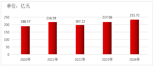 2020-2024年全縣社會(huì)消費(fèi)品零售總額