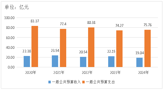 全年一般公共預(yù)算收入19.04億元,下降14.1%。其中,稅收收入11.32億元,下降4.5%。一般公共預(yù)算支出75.76億元,增長(zhǎng)2.0%。其中,一般公共服務(wù)支出4.93億元,增長(zhǎng)2.6%;社會(huì)保障和就業(yè)支出18.13億元,增長(zhǎng)3.6%;節(jié)能環(huán)保支出0.84億元,下降40.6%;教育支出18.50億元,增長(zhǎng)0.1%;衛(wèi)生健康支出4.24億元,下降6.6%;城鄉(xiāng)社區(qū)支出3.19億元,增長(zhǎng)60.2%;農(nóng)林水支出17.77億元,增長(zhǎng)0.5%;交通運(yùn)輸支出1.19億元,增長(zhǎng)13.1%;科學(xué)技術(shù)支出0.55億元,增長(zhǎng)0.2%。