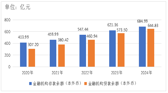 2020-2024年全縣金融機(jī)構(gòu)(本外幣)存貸款余額