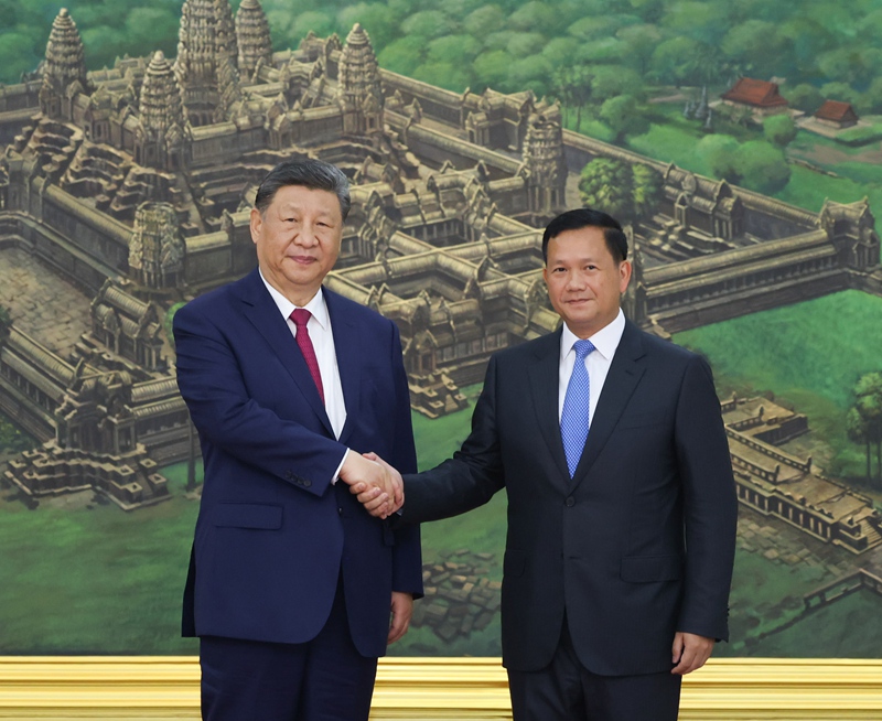 新華社金邊4月17日電(記者 郝薇薇 張遠(yuǎn) 吳夏)4月17日晚,國(guó)家主席習(xí)近平同柬埔寨首相洪瑪奈在金邊和平大廈舉行會(huì)談。兩國(guó)領(lǐng)導(dǎo)人一致同意攜手構(gòu)建新時(shí)代全天候中柬命運(yùn)共同體,宣布2025年為“中柬旅游年”。