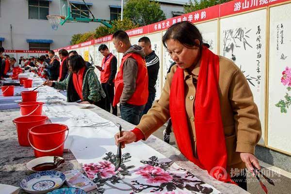 本次桃花筆會以“錦繡桃園啟新程,詩畫鄉(xiāng)村繪振興;文旅相融興故里,丹青共繪新篇章”為主題,以書畫會友,展示“中國民間文化藝術之鄉(xiāng)”的風采,同時借助本次書畫活動,宣傳劉套鎮(zhèn)書畫的歷史淵源,擴大劉套鎮(zhèn)書畫知名度,大力推進書畫產(chǎn)業(yè)創(chuàng)新發(fā)展共繁榮。筆會現(xiàn)場,百張書畫長案依次排開,書畫名家及書畫愛好者圍繞活動主題寫桃花、畫桃花,以書言志、以畫寄情,揮毫展墨韻,妙筆繪丹青,勾勒出一幅幅具有鮮明時代氣息和濃郁地域特色的作品,彰顯了“中國書畫藝術之鄉(xiāng)”的獨有氣質(zhì)和文化意蘊。現(xiàn)場還設有由書畫家創(chuàng)作的“桃”主題組成的書畫展廊,吸引了眾多游客和居民前來參觀。