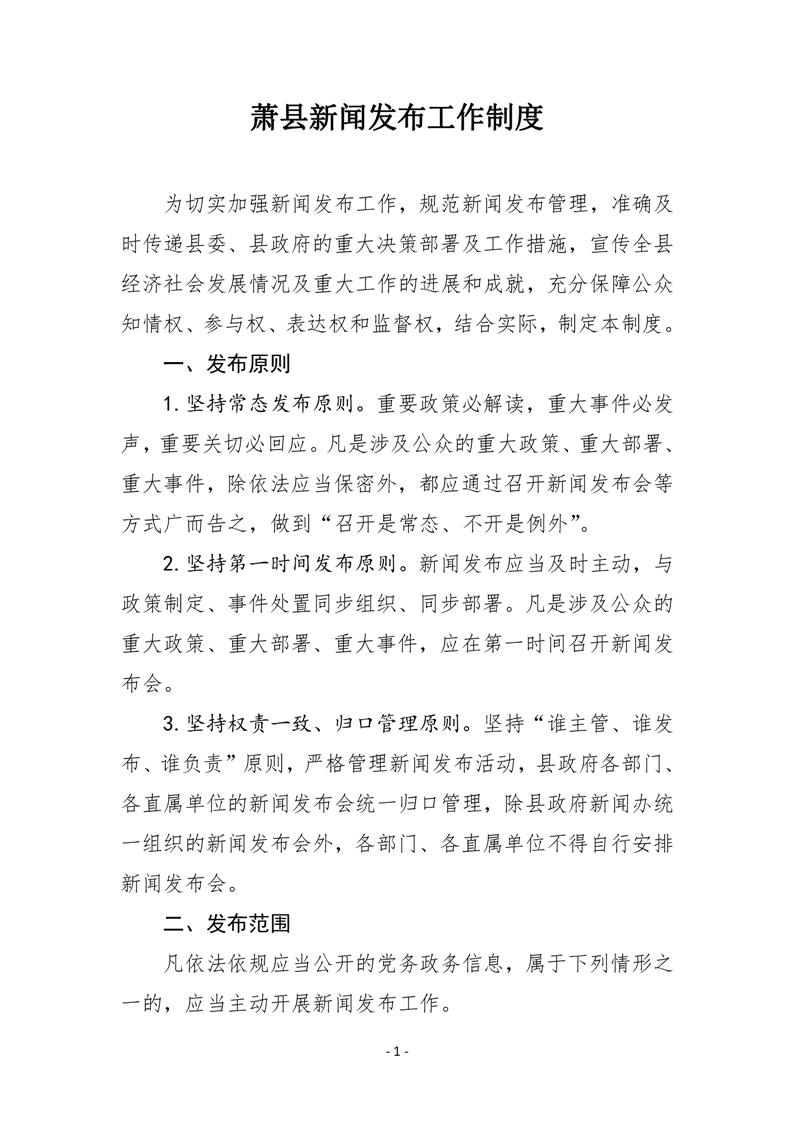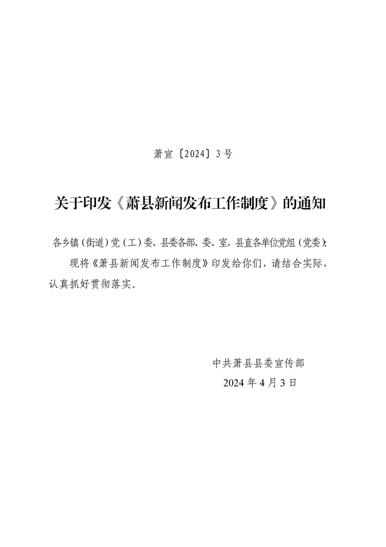 關(guān)于印發(fā)《蕭縣新聞發(fā)布工作制度》的通知